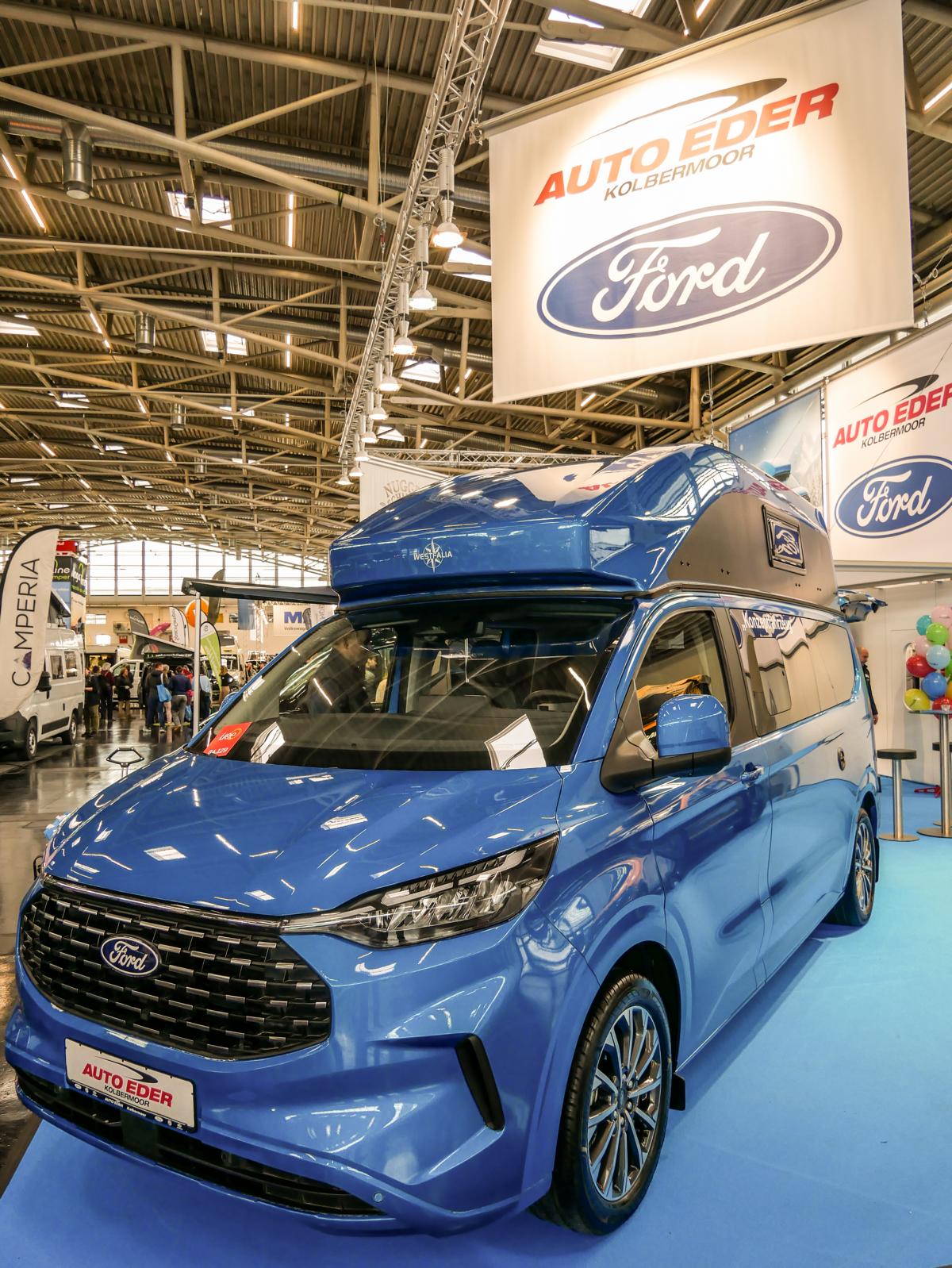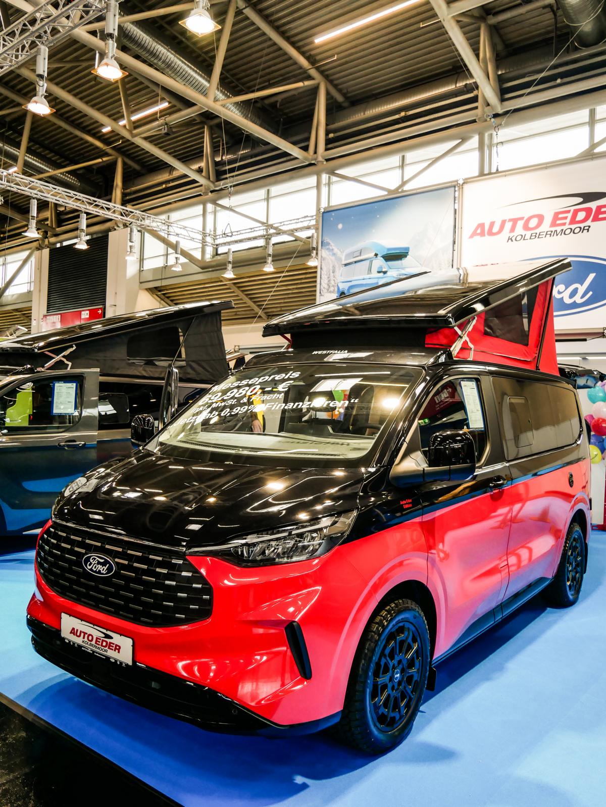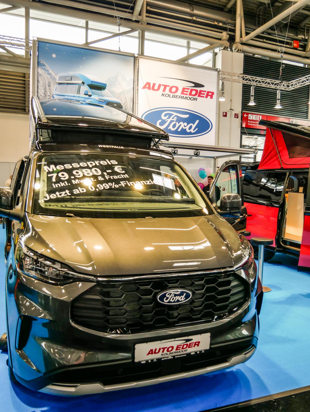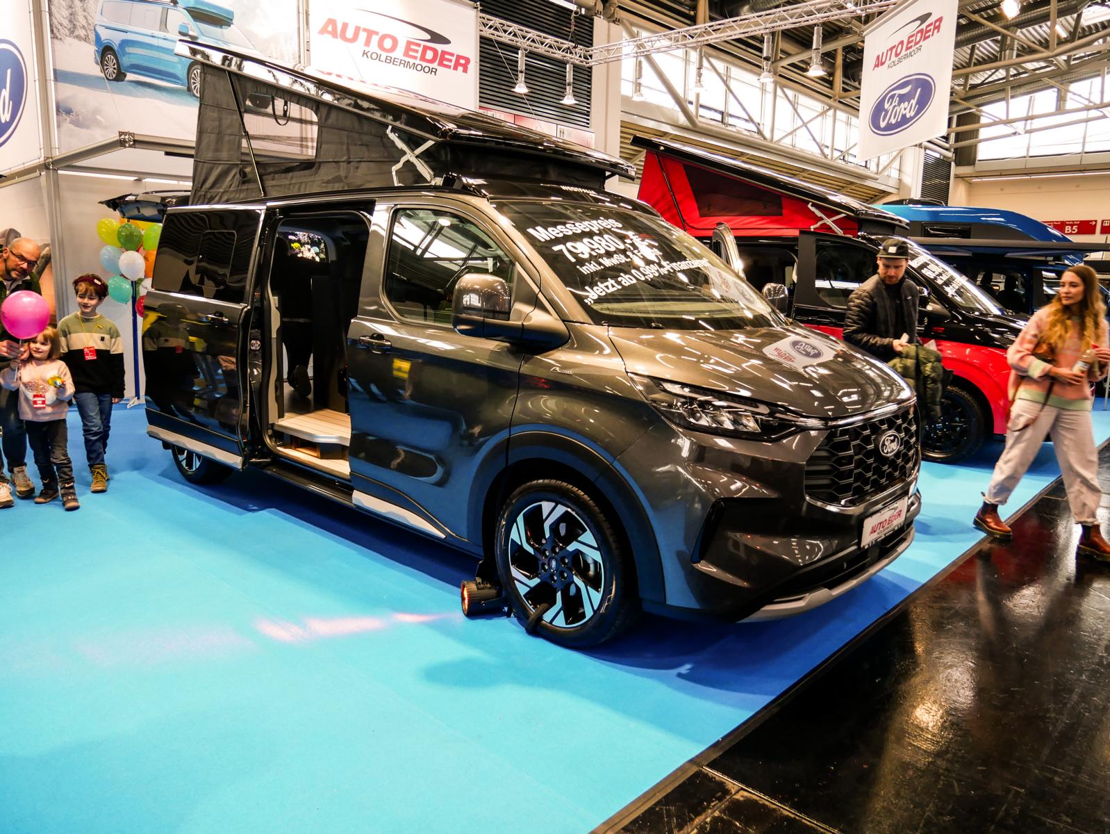 Willkommen in der Ford Nugget-Welt: Aufstelldach-Modelle, bei denen aus einem Van im Handumdrehen ein vollwertiger Camper wird. Wer am Stand durch die Schiebetür trat, spürte sofort, warum diese Fahrzeuge so beliebt sind: klare Linien, durchdachter Stauraum und ein Innenraum, der nicht nach Kompromiss aussieht, sondern nach Idee. Küche, Spüle und Kochmöglichkeit sind so integriert, dass aus dem Messebesuch schnell ein gedanklicher Roadtrip wurde – vom ersten Kaffee am Morgen bis zum letzten Handgriff am Abend.