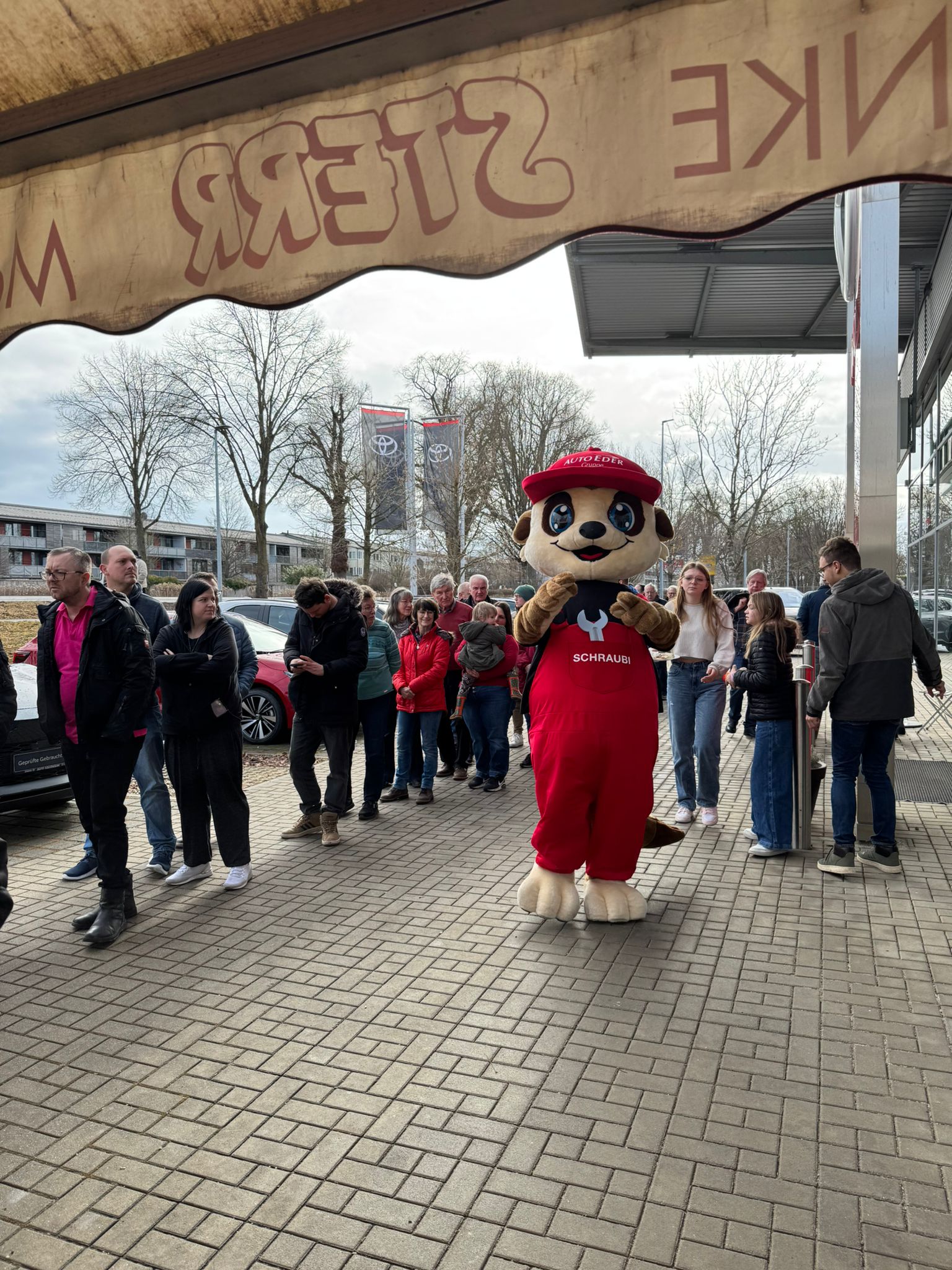 Ein besonderes Highlight des Tages war der Auftritt unseres Maskottchens Schraubi. Mit seiner präsenten, sympathischen Art war Schraubi immer dort, wo gerade gelacht, gewunken oder fotografiert wurde – und wurde damit zum verbindenden Element zwischen Beratung, Genuss und Familienprogramm. Ob vor dem Autohaus, mitten im Geschehen oder beim Erinnerungsfoto: Schraubi hat dem Toyota Teamday eine persönliche Note gegeben und für viele strahlende Gesichter gesorgt.