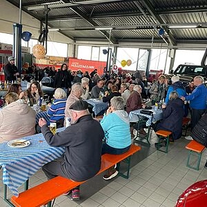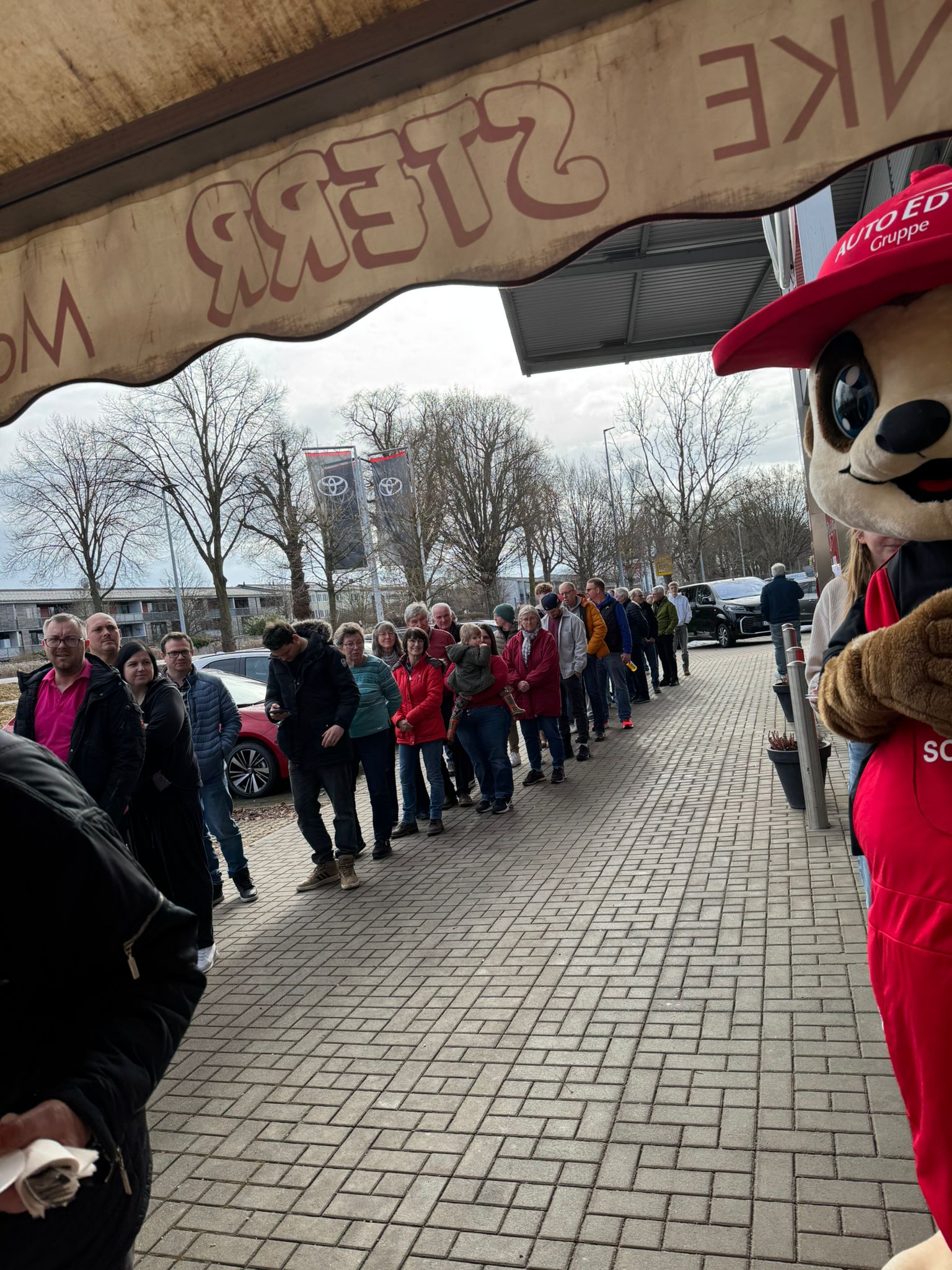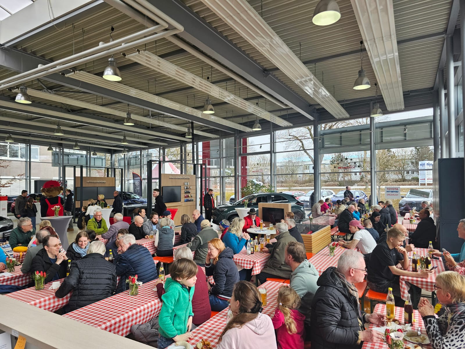 Trotz winterlicher Kulisse vor der Tür war es drinnen warm und lebendig. Zwischen Empfang, Ausstellung und Werkstatt entstand eine Atmosphäre, die man weniger mit einem klassischen Autohausbesuch verbindet als mit einem geselligen Marktplatz: Gespräche an den Tischen, neugierige Blicke in die Ausstellung und immer wieder Zeit für persönliche Fragen. Für das leibliche Wohl war ebenso gesorgt wie für die kleinen Gäste: Rollbraten, Weißwurstfrühstück und Bier vom Fass wurden ebenso gern angenommen wie die Luftballons, die Kinderhände über den Tag hinweg nicht mehr losließen. Dazu kamen attraktive Teamday-Konditionen, die viele Besucherinnen und Besucher zum konkreten Nachfragen und Planen nutzten.