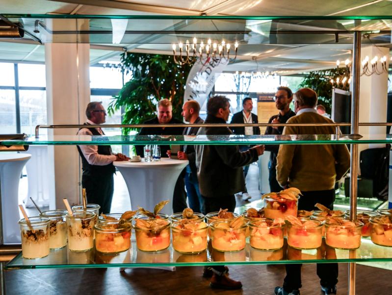 Während des Brunchs füllten sich Foyer und angrenzende Räume mit intensivem Austausch. Zwischen Stehtischen, Screens und Informationsständen suchten viele Händler gezielt das Gespräch mit den Ausstellern und sprachen sehr konkret über ihre eigenen Abläufe.