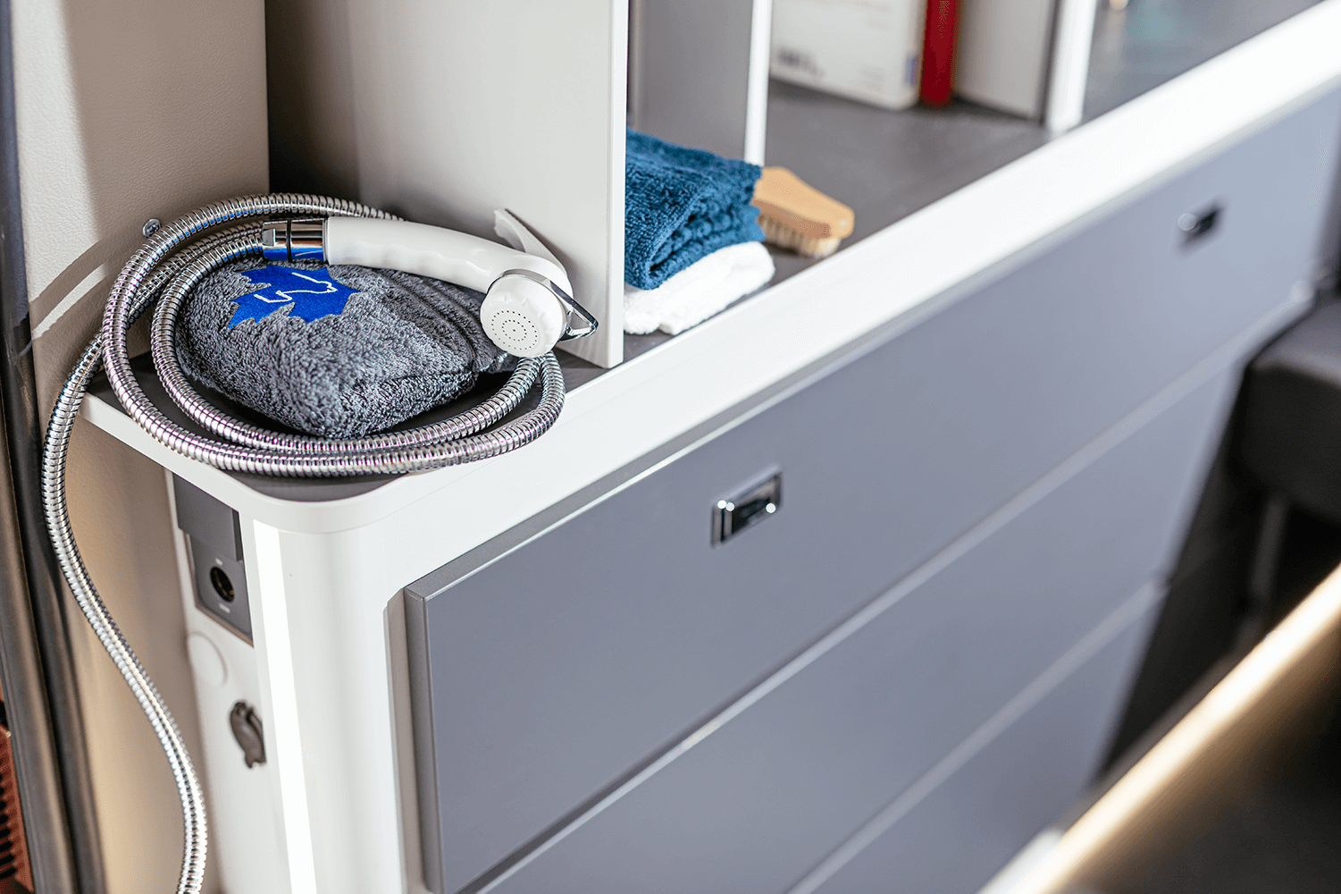 Starter Kit: CEE-Adapterkabel, Verbandskasten, Warnweste, Toilettenchemie, Warndreieck, Auffahrkeile, Feuerlöscher